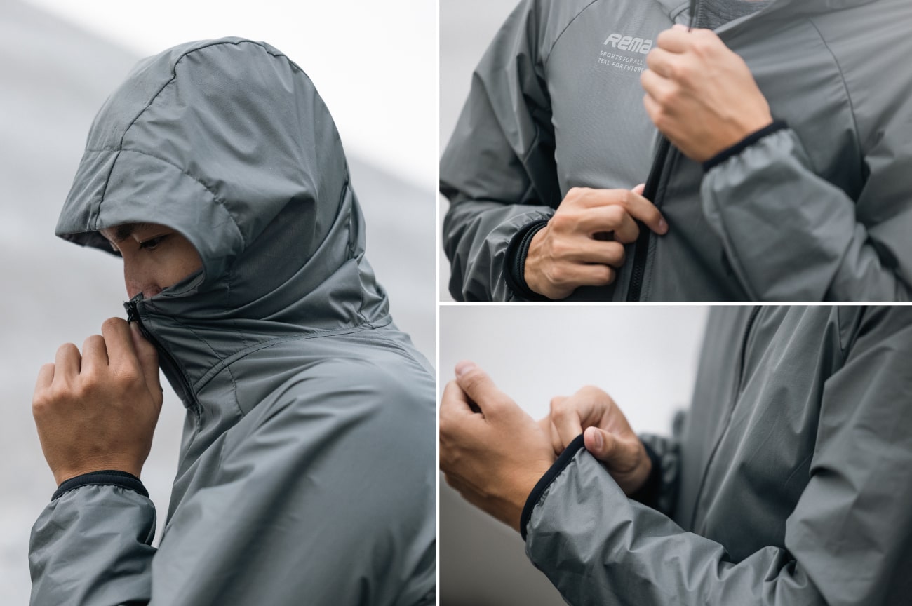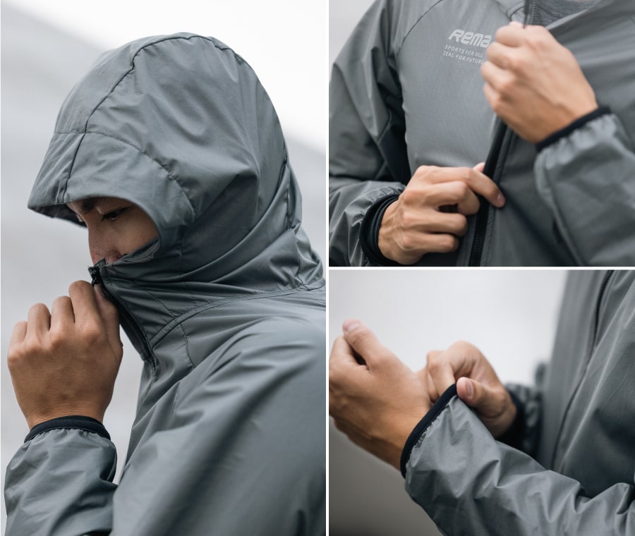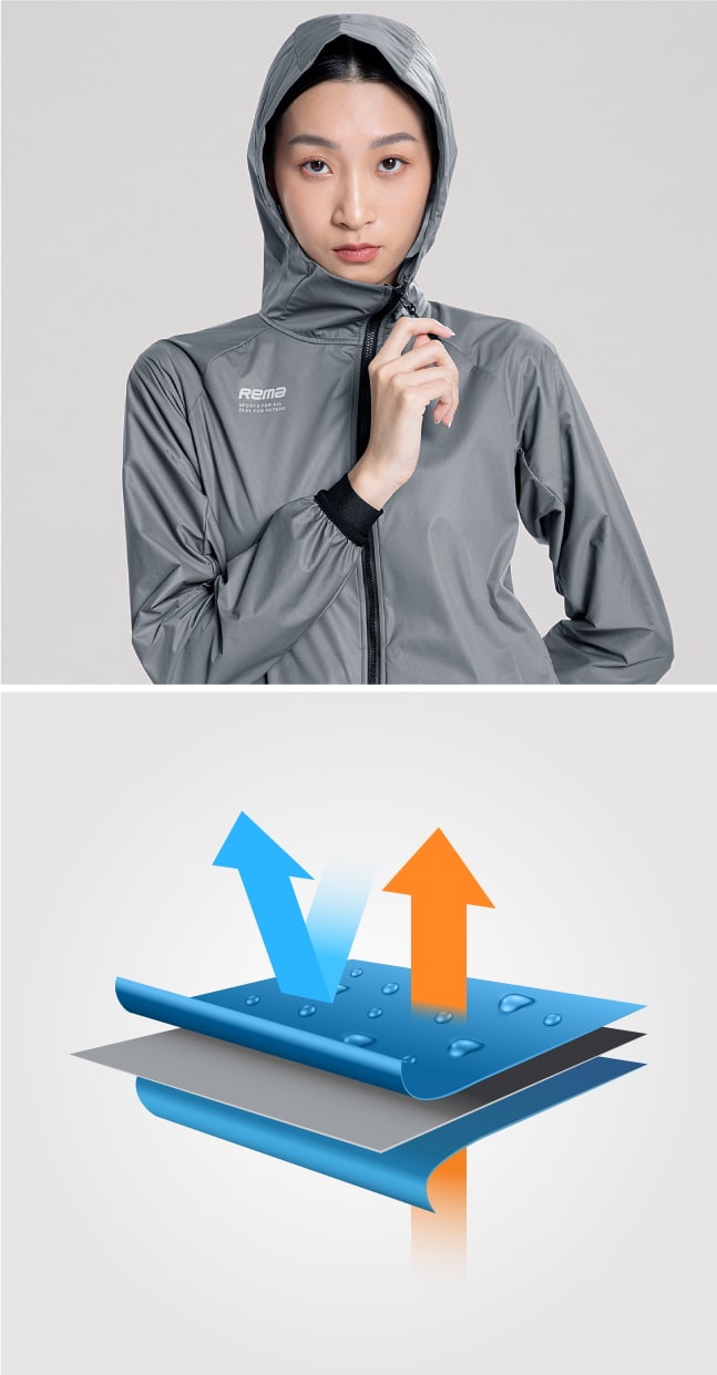 Rema 不斷來回研發與測試,希望能熱愛戶外高強度運動 ( 如跑步、野跑、縱走 ) 的您,創造出一款極致輕量的 3L 超輕薄防風外套,不但擁有三層貼合面料的優勢,也能滿足您在戶外活動時,常保身體乾爽舒適的需求。
