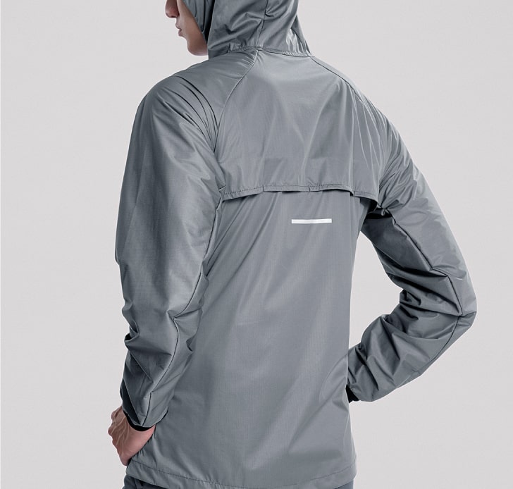 對於運動衣著技術我們從不屈就或妥協於用料與質感,獨家開發出極致輕薄的三層貼合高科技面料,內層觸感親膚,流汗不黏膩,且其中更含親水性元素,更能有助於從體內將汗水快速輸出,中層則為透氣抗風的耐用薄膜,最外層則增添防潑水抗汙效果,為運動風衣外套打造出其極罕見的雙效機能,而且相當輕便好攜帶,更能摺疊成手掌大的手拿包。