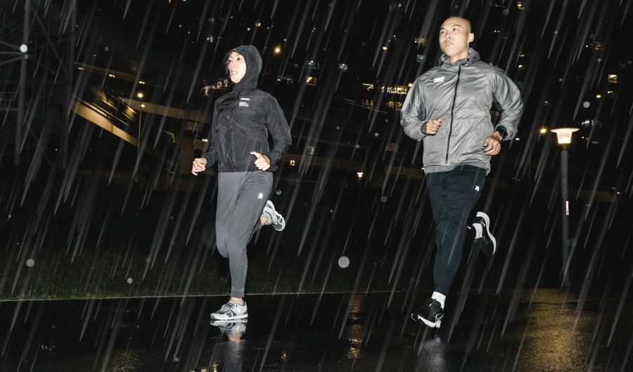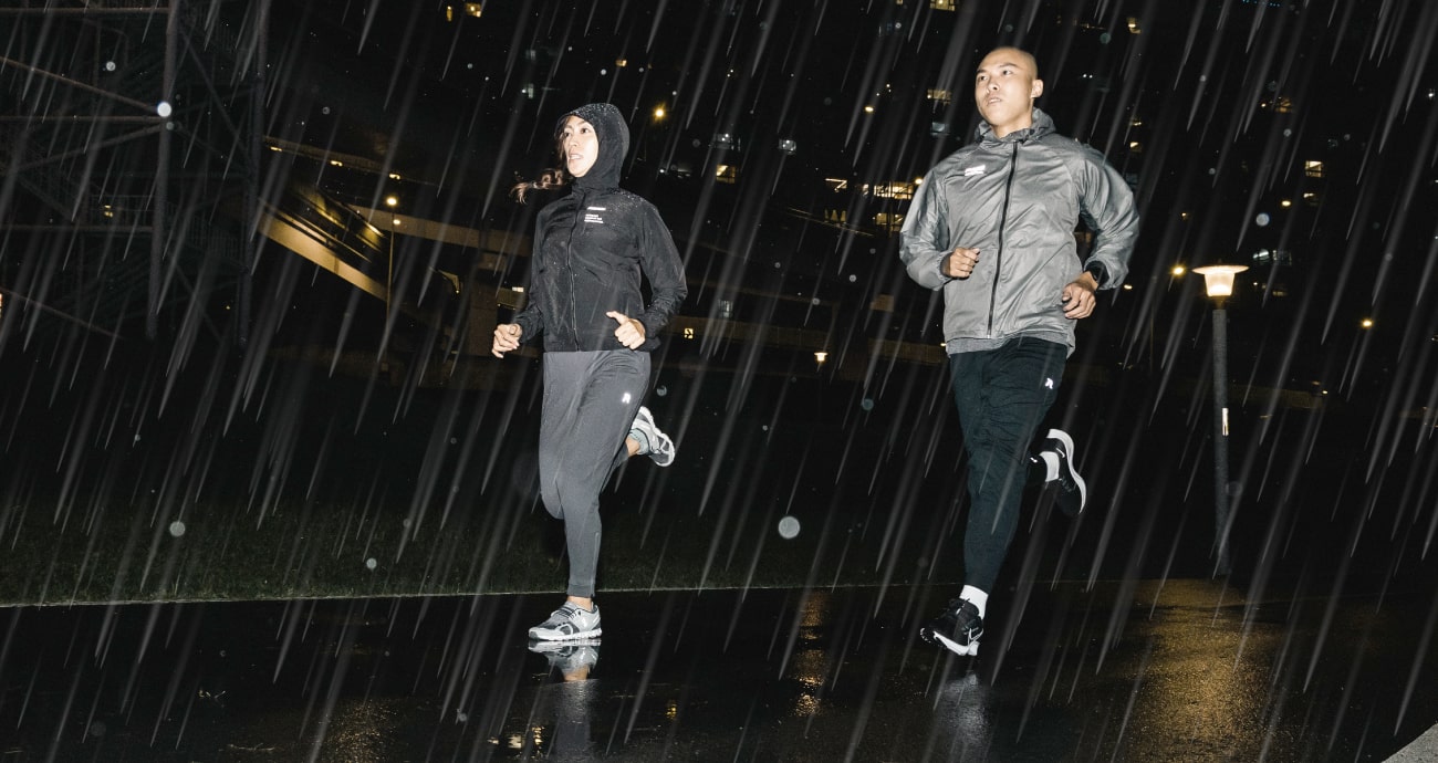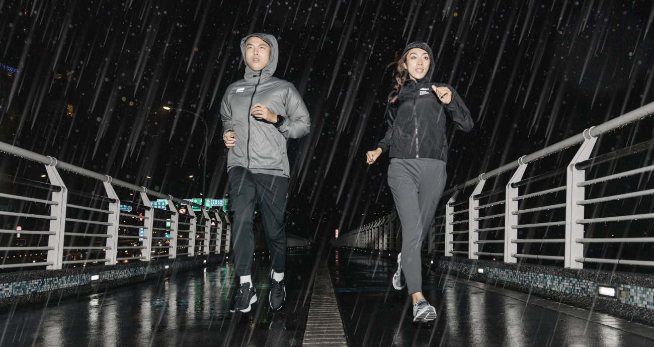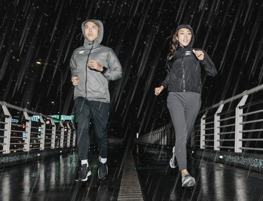 不論是豔陽高照的晴天,或是濕冷陰鬱的雨天,熱愛跑步和擁有目標的我們,都應該無畏挑戰,燃起堅毅不饒的鍛鍊決心,自成結界迎戰各種天候狀態。