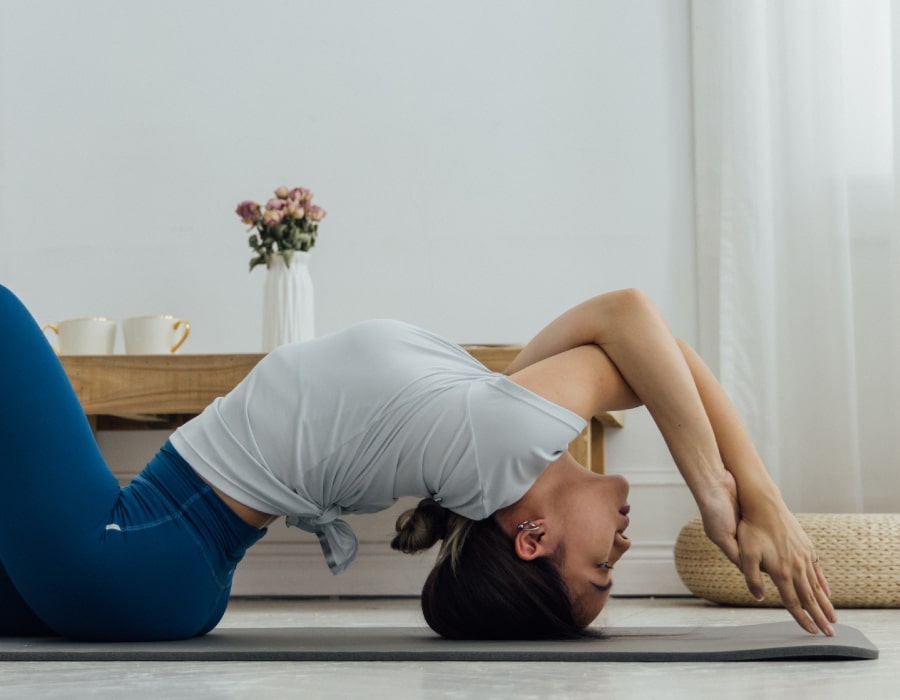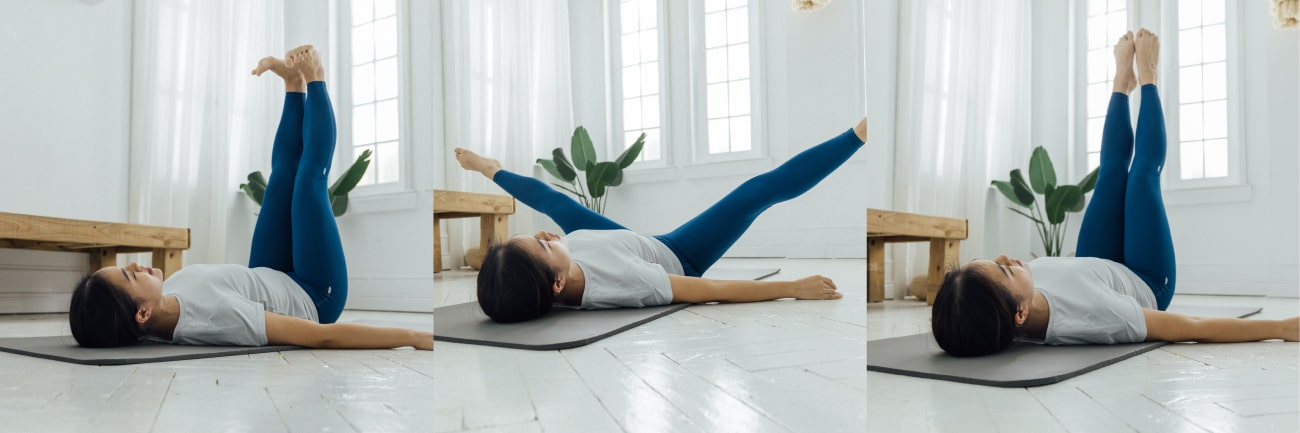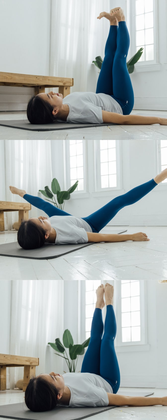 Step 1:保持身體平躺於地面,腳板對齊,膝蓋彎曲。