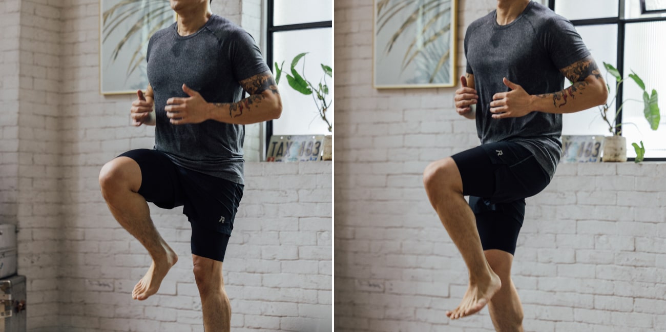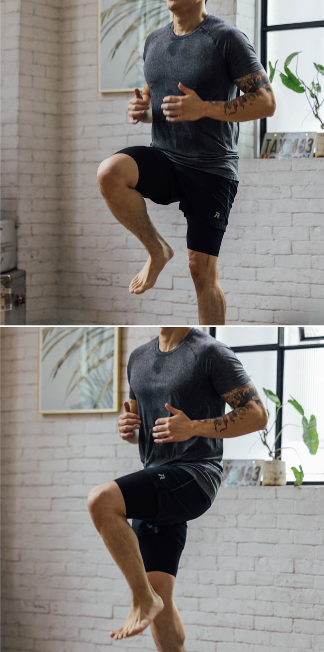 step 2:以跑步姿勢,盡量將膝蓋抬起來。
