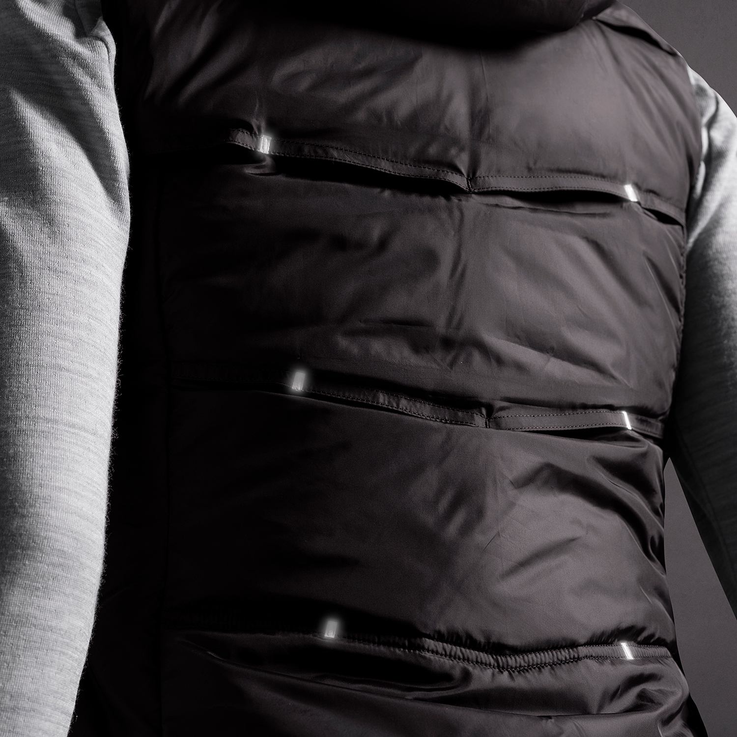 後背是品牌一如既往的標誌特色,經典階梯式反光,提供夜間運動時的安全辨識;鰓片式透氣孔,能在身體運動產生震幅時,打開並啟動散熱機制,靜止時則自然關閉。