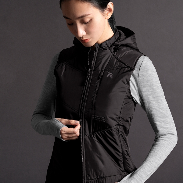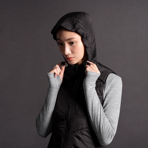 打造永續產品,採用 PrimaLoft® Gold Active+ 取代動物性羽毛,可拆卸式連帽設計,隨心所欲變換立領或連帽,一件就足夠,極致輕盈且防潑水的保暖背心,可壓縮收納,滿足日常都會和戶外活動所需。