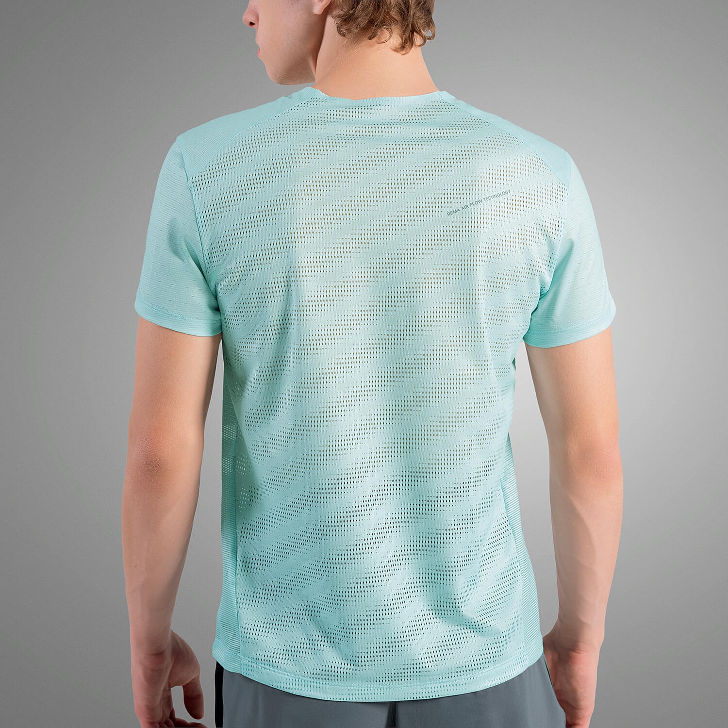 透過創新的織造工藝,此款跑步短袖上衣不僅優雅,用速度迎合空氣流動。讓每一位跑者都能感受到如同風的陪伴,自在地切割氣流,享受每一步的輕盈。