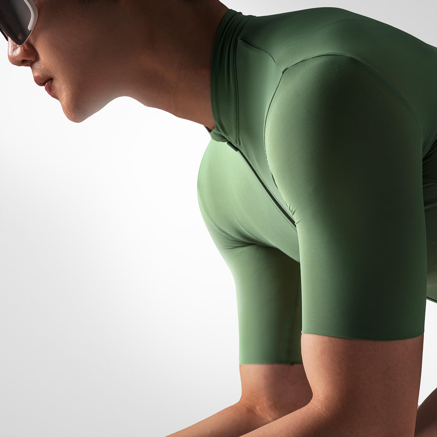 選用義大利 EUROJERSEY Sensitive® 頂級面料,輕盈、柔軟,同時具備高支撐性與彈性回復力。袖口採用無收邊設計,凸顯布料本身的俐落輪廓與不捲邊特性;衣長微幅加長,更適應多數騎姿變化。這些細節,來自對舒適的理解——因為我們相信,舒適,是性能真正的衡量標準。